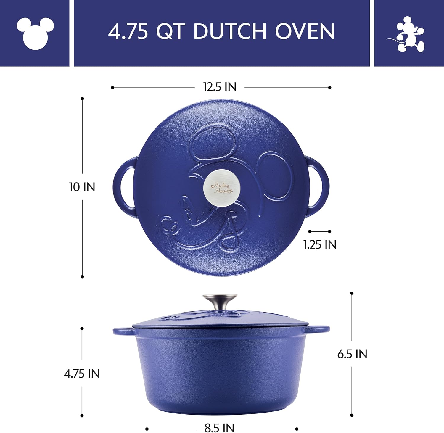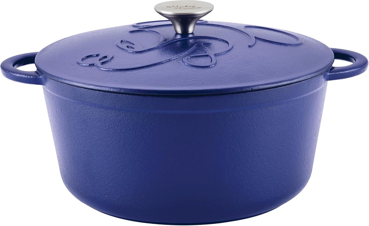 Disney Bake with Mickey - Farberware Disney Bon Voyage 4.75 Qt Blue Pre-Seasoned Cast Iron Dutch Oven/Casserole Pan with Lid - 49039-C