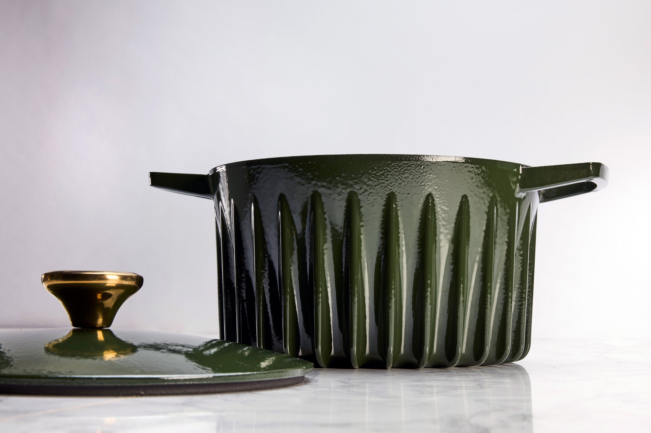 Experience exceptional cooking with the FIREUP 5.3 QT Dutch Oven. Designed to provide the most even, oven-like cooking experience, this kitchen essential is perfect for bringing out the best in your recipes while saving energy and time. Made from recycled iron and enameled in France, this Dutch oven combines functionality, beauty, and sustainability. Its vibrant olive green color and gold-finish stainless-steel knob add a touch of elegance to your kitchen. A timeless kitchen classic with a one-of-a-kind design and heirloom quality, the FIREUP Dutch Oven makes the perfect gift for any cooking enthusiast. Elevate your cooking experience with the FIREUP 5.3 QT Dutch Oven. Cook delicious meals with ease and style while enjoying the benefits of superior heat distribution and moisture retention. Add this iconic piece to your kitchen collection today!