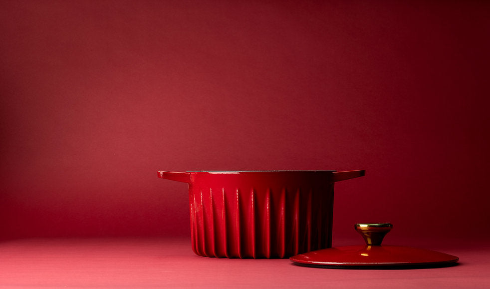 Experience exceptional cooking with the FIREUP 5.3 QT Dutch Oven. Designed to provide the most even, oven-like cooking experience, this kitchen essential is perfect for bringing out the best in your recipes while saving energy and time. Made from recycled iron and enameled in France, this Dutch oven combines functionality, beauty, and sustainability. Its vibrant red color and gold-finish stainless-steel knob add a touch of elegance to your kitchen. A timeless kitchen classic with a one-of-a-kind design and heirloom quality, the FIREUP Dutch Oven makes the perfect gift for any cooking enthusiast. Elevate your cooking experience with the FIREUP 5.3 QT Dutch Oven. Cook delicious meals with ease and style while enjoying the benefits of superior heat distribution and moisture retention. Add this iconic piece to your kitchen collection today!