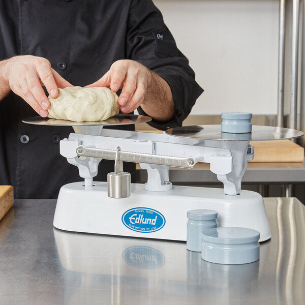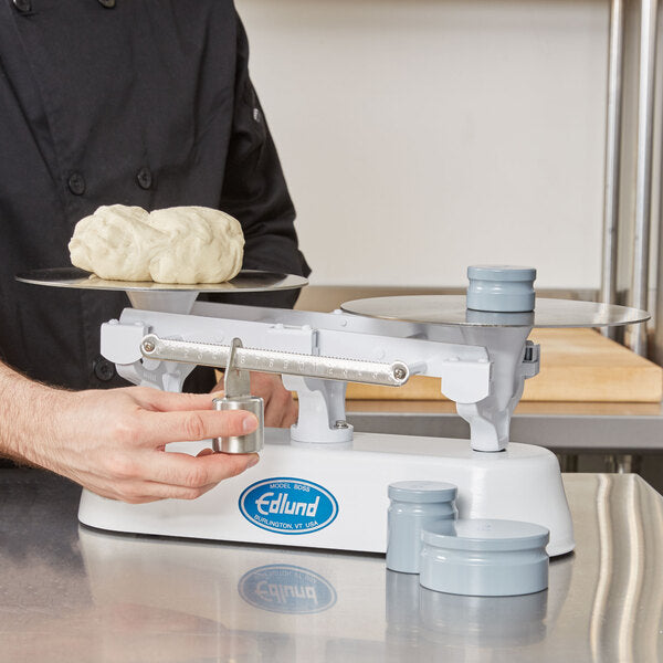 The Edlund 8 lb All Stainless Steel Construction Baker's Dough Scale is designed to ensure consistency in portioning your baked goods. Featuring 9" diameter stainless steel platters, this scale provides durability and accuracy with its adjustable poise and scale beam. The measuring weights are included for calibration, ensuring precise measurements. With a baked-epoxy finish, the scale stands up to daily use while being easy to clean. Ideal for bakeries looking for reliable performance, this scale allows for effortless dough weighing to ensure portions are accurate every time.