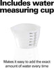• Power and cooking lights Indicate when power is on and eggs are ready. Includes water measuring cup Makes it easy to add the exact amount of water every time.
