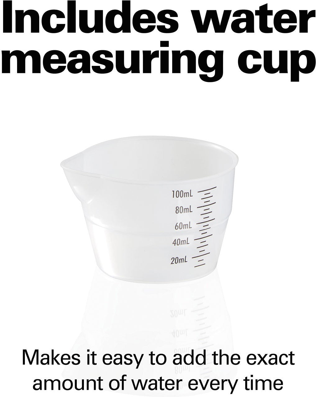 Includes Water Measuring Cup: Makes it easy to add the exact amount of water every time.