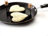Who can resist this adorable egg and pancake design? Great for making heart shaped eggs or pancakes that the kids will love! Or use for making homemade egg sandwiches! Deep enough to add extras like veggies, cheese, cooked ham or bacon. Each ring holds 1/4 cup batter or 1 raw egg. Once the bottom is cooked, remove ring and flip the egg or pancake! Nonstick coating for easy release and clean up. Wood handles stay cool while cooking and fold down for easy storage. Recipes and instructions included.