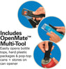 - OpenMate™ Multi-Tool: Includes a multi-functional tool for opening bottle tops, hard plastic packages, and pop-top cans. Conveniently stores on the back of the can opener for easy access.
