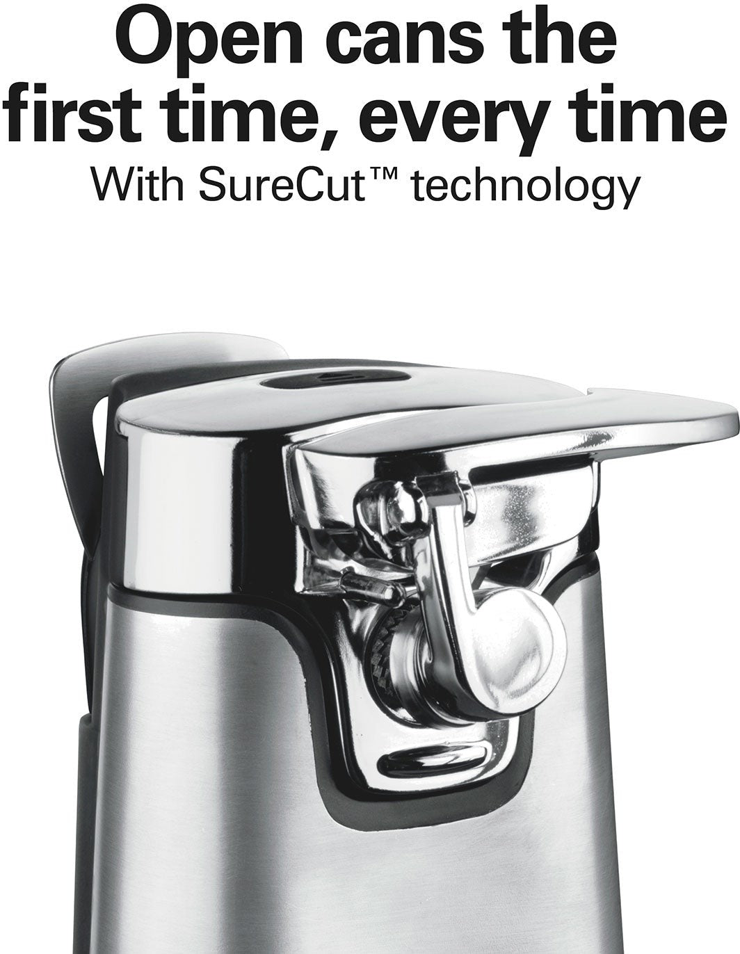 Make opening cans and bottles effortless with the Hamilton Beach SureCut Can Opener, featuring the versatile OpenMate™ multi-tool for added convenience. The Hamilton Beach SureCut Can Opener with OpenMate is your go-to kitchen tool for opening cans and more. With its SureCut™ technology, it ensures cans are opened effortlessly on the first try, saving you time and frustration in the kitchen. The included OpenMate™ multi-tool expands its functionality by allowing you to open bottle tops, hard plastic packages, and pop-top cans with ease. Cleanup is a breeze with the removable cutting unit that can be rinsed under the faucet or placed in the dishwasher. Its automatic hands-free operation means you can multitask in the kitchen while the can opener does its job, shutting off automatically once the can is fully opened. Experience the reliability and convenience that has made Hamilton Beach the #1 brand in can openers in the U.S.*, backed by consumer ratings of 4½ stars. Add this efficient and stylish can opener to your kitchen arsenal for seamless meal preparation every day. *As per Hamilton Beach internal sales data.