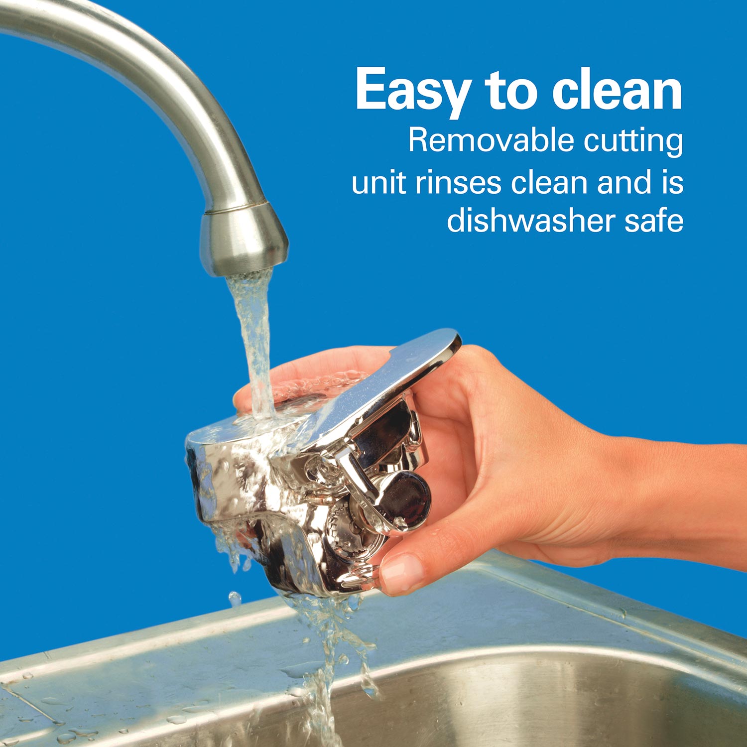 - Easy to Clean: The removable cutting unit rinses clean under the faucet and is dishwasher safe, making cleanup quick and hassle-free.