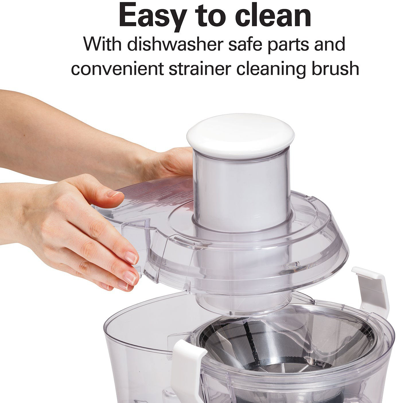 Discover the ease and convenience of fresh, homemade juice with the Hamilton Beach Recertified Big Mouth 800 Watt Juice Extractor. This recertified model combines powerful performance with simple controls to deliver delicious, nutrient-rich juice in seconds. Whether you're juicing fruits or vegetables, its extra-large 3 inch Big Mouth® chute accommodates whole foods, minimizing prep time and effort. The juicer's robust 800 watt motor ensures maximum juice extraction, producing less waste and yielding more flavorful juice with every use. A stainless steel micromesh filter effectively strains pulp and seeds, resulting in smooth and nutritious juice that's free from unwanted debris. Cleanup is effortless with dishwasher-safe parts, including the pulp bin, juice bowl, lid, and pusher. A dedicated strainer cleaning brush is included to maintain the stainless steel filter. Enjoy added confidence with this BPA-free juice extractor, which is safe for food contact zones. It also includes recipes to inspire your juicing journey right out of the box. Backed by Hamilton Beach, a leader in juicing technology, this recertified model comes with a 3-year limited warranty, ensuring peace of mind and reliable performance.