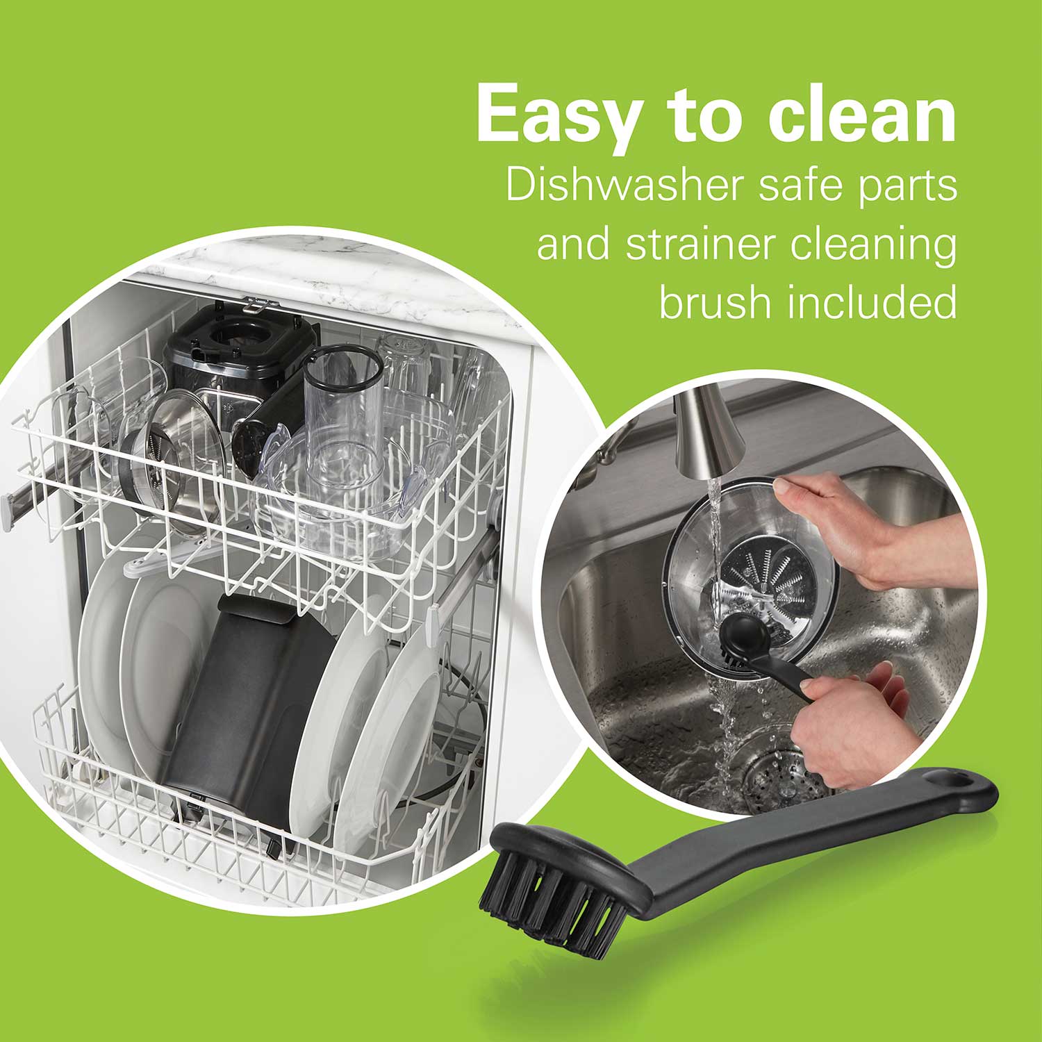 Easy-to-Clean: Dishwasher-safe parts include pitcher, lid, micromesh filter, and pulp bin; includes a strainer cleaning brush.