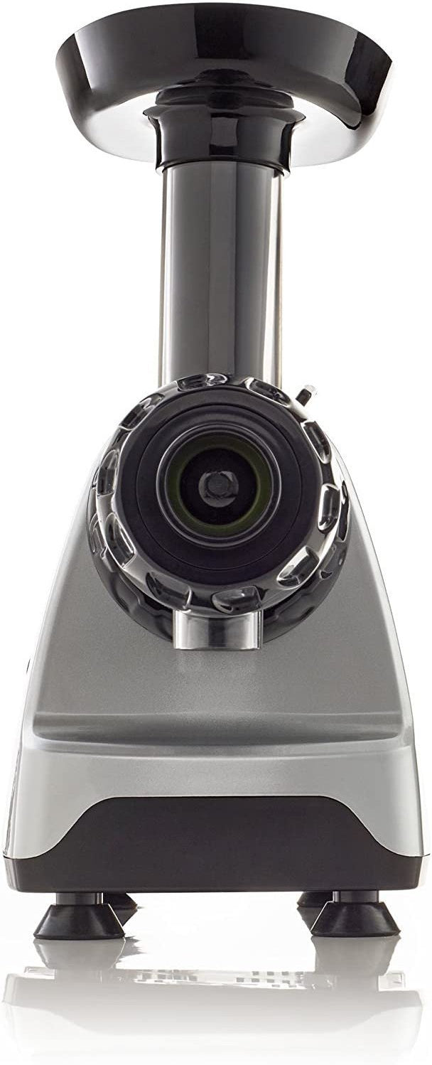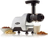 Omega's most compact low-speed, masticating juicer and nutrition system features 80 RPM and a single auger. The low speed minimizes heat build-up and oxidation. Easy cleaning with automatic pulp ejection. Quiet operation. All parts are included to make all-natural nut milks, nut butters, frozen fruit sorbets, pasta, baby food, minced herbs and ground beans.