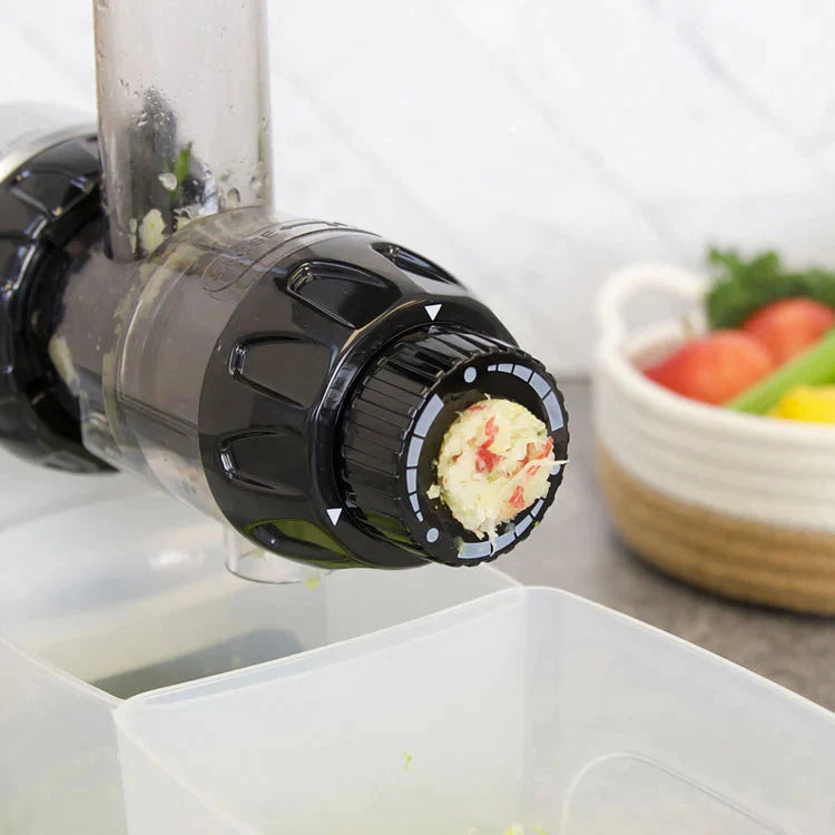 The adjustable end cap features three settings to get the most juice out of your fruits, vegetables, and leafy greens.