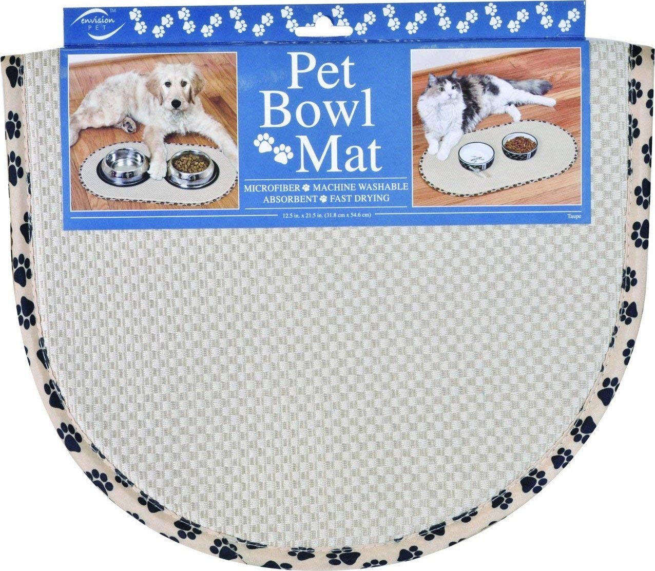 Pamper your pet and your home with this Envision Home pet bowl taupe microfiber anti-skid mat. The unique, laminated design combines a thin layer of foam between a top layer of high quality, super-absorbent microfiber, and a bottom water-resistant layer. The anti-skid bumps help keep the mat in place. The mat is highly durable and helps protect floors from splashes and spills. Best of all, it is machine washable for easy clean up.