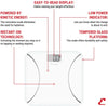 The Escali 400 lbs White Kinetic Bathroom Scale offers an eco-friendly and reliable way to track your weight with precision. Powered by kinetic energy, this innovative scale activates with a simple press of its center button—no batteries required—making it an environmentally conscious choice for modern households. Its durable White platform supports up to 400 lbs (180 kg) and features a clear, easy-to-read digital display that provides accurate measurements in both pounds and kilograms. With its sleek, minimalist design and hassle-free operation, the Escali kinetic scale is perfect for anyone seeking sustainability without sacrificing style or functionality.