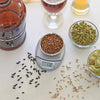 - Reset the scale to zero weight to measure multiple items or subtract the weight of the container