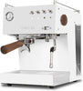 • White/Wood Finish: The machine's White body paired with wood accents offers a sleek, modern look that complements any kitchen or café setup. The wooden handles on the portafilter and steam wand add a touch of elegance and comfort, making it a standout piece in any environment.
