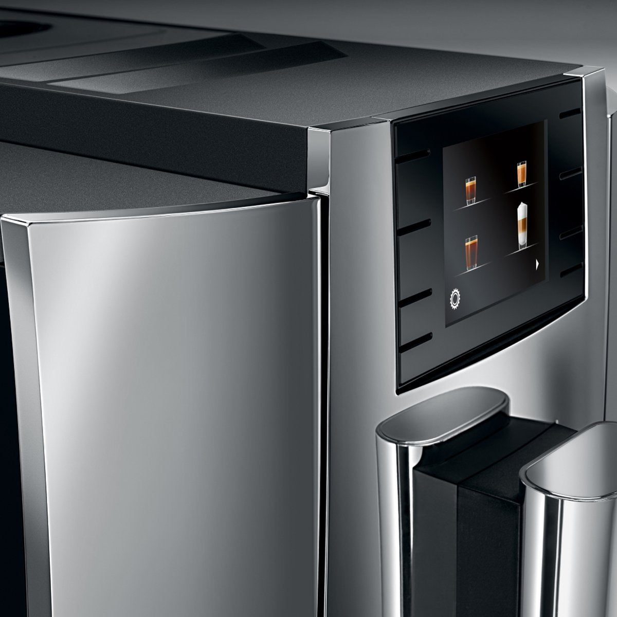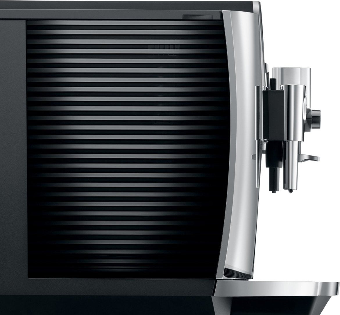 JURA coffee machines feature a clean and expressive characteristic design. High-quality materials and precise craftsmanship underline the premium quality of the modern E8. Its styling alone is evidence of its quality, functionality and durability. Details such as the grooved water tank or the high-quality, chrome-plated cup grille perfectly complement the clean, harmonious design of the E8.
