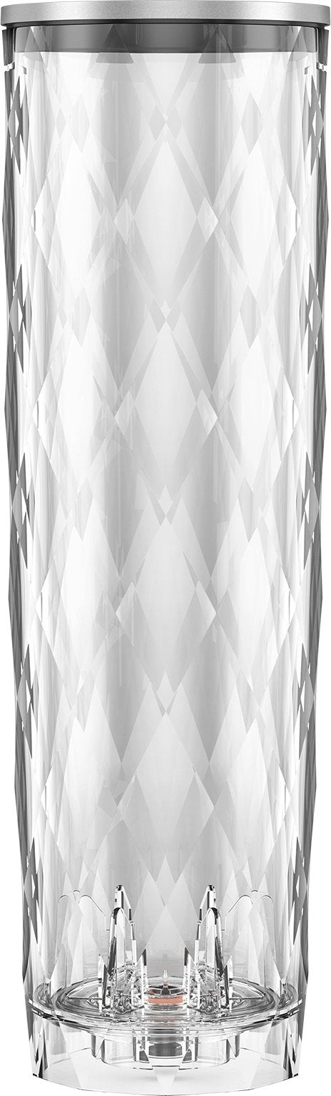 A particular highlight of the design is the round water tank. Its pattern combined with its cylindrical shape is inspired by premium crystal carafes.