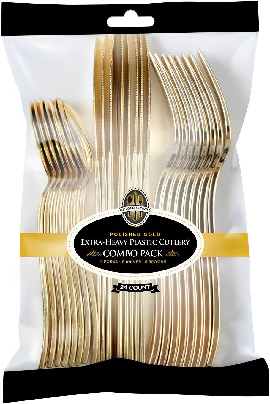 Fineline Settings - Heavy Weight Plastic Cutlery Combo Gold Look, 24 Per Bag, 16 Per Case - 7650