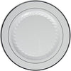 Fineline Settings - 10" White Plastic Round Plate With Silver Bands, 120/cs - 510WH