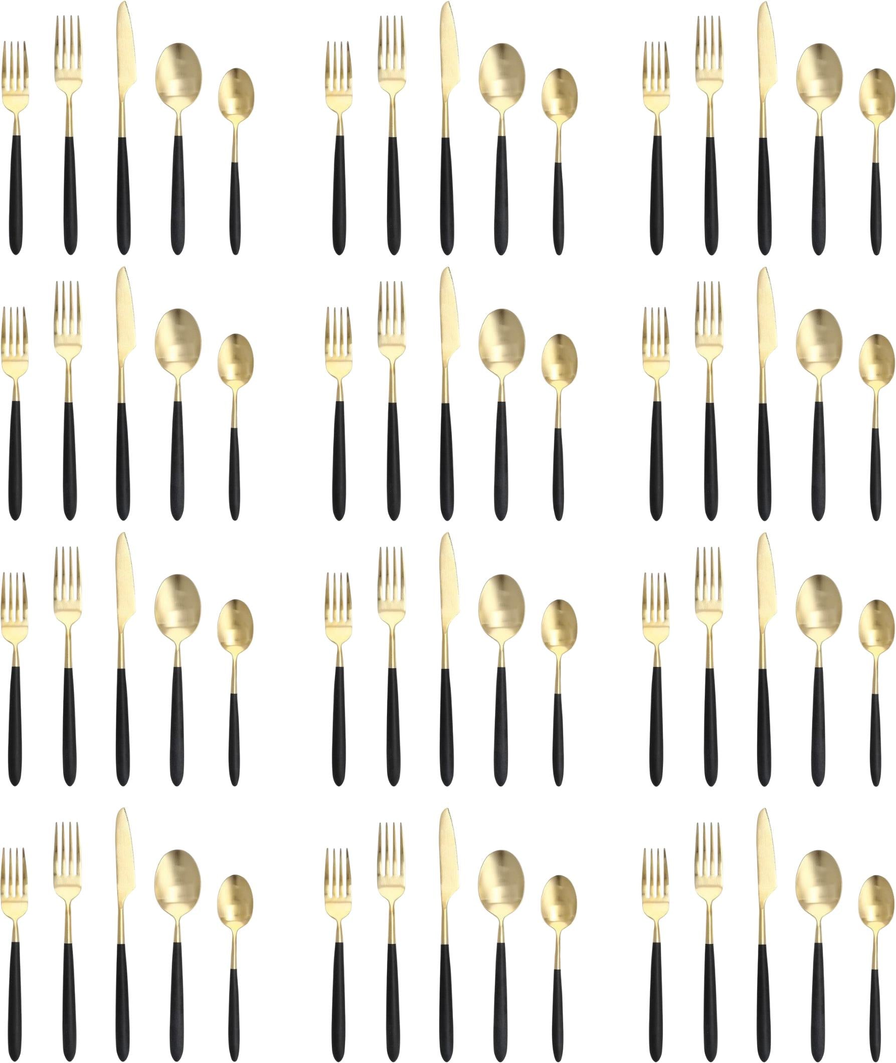 Fortessa - Velo 60 Pc Black/Gold Brushed Flatware Set - 60PPS-114CG-20PC