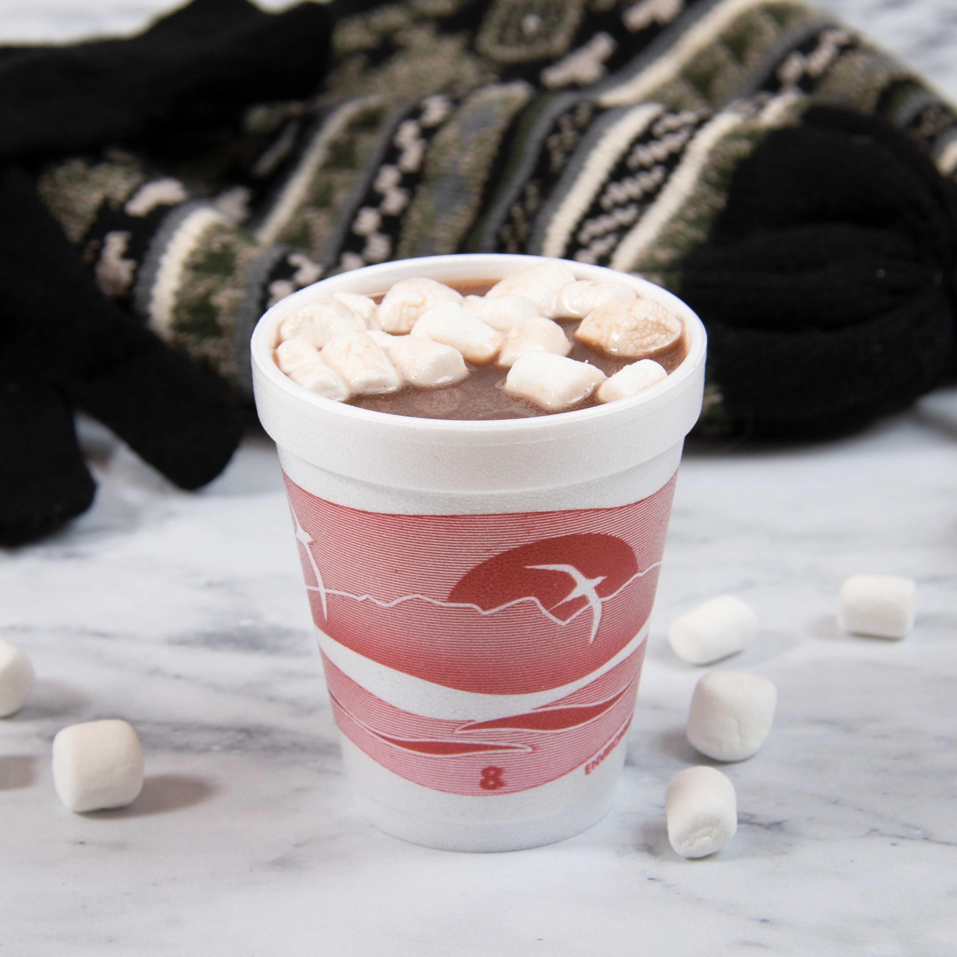 Dart Container's J Cup Horizon Print 8 oz Foam Cups, a premium solution for your beverage service needs. This pack includes 1000 cups, ensuring you have an ample supply for various occasions. Upgrade your beverage service with Dart Container's J Cup Horizon Print 8 oz Foam Cups — a perfect combination of style, functionality, and convenience. Whether you're hosting a corporate event, a party, or simply stocking your office pantry, these foam cups are the go-to choice for serving drinks with flair. Here are the key features that set these foam cups apart: