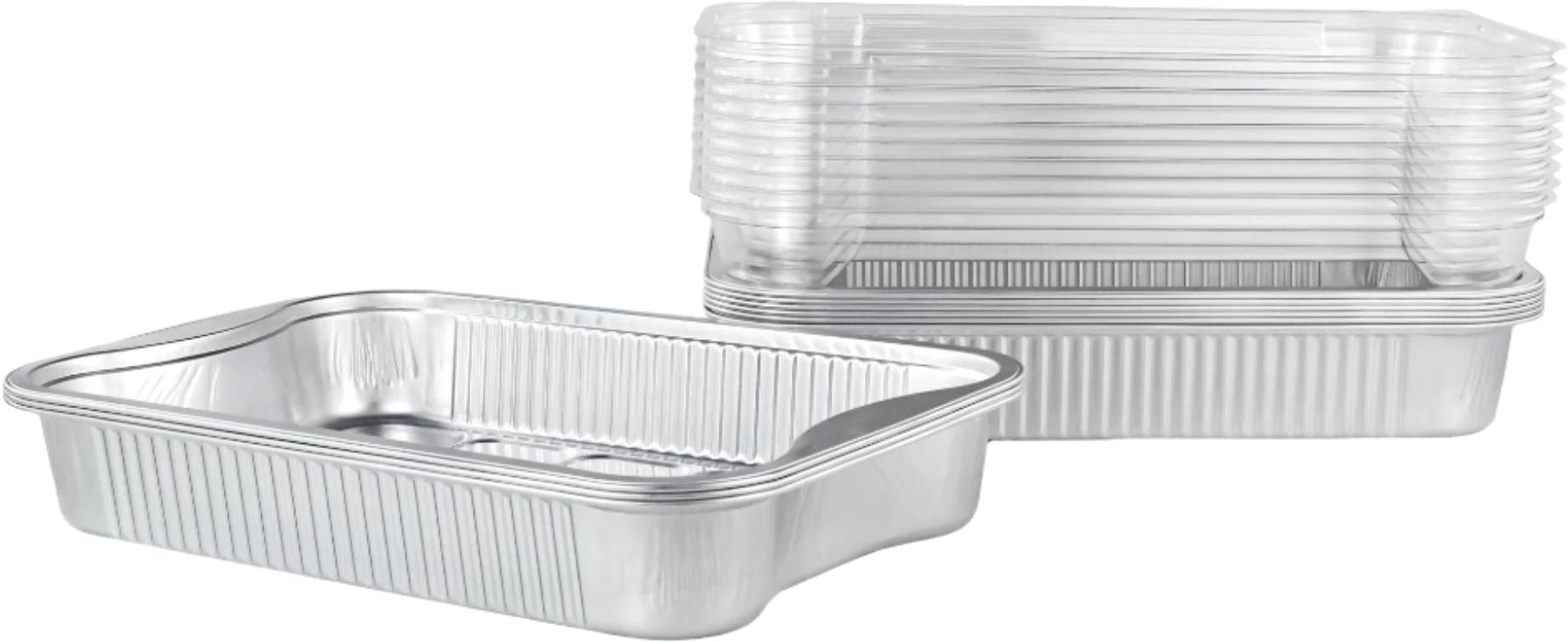 The Talthi 65 Oz Aluminum Container Combo is the perfect solution for food preparation, storage, and transport. Designed with versatility in mind, these recyclable and reusable containers are ideal for ready-to-cook meals and compatible with various cooking methods, including ovens, BBQs, microwaves, air fryers, and freezers. Each rectangular container provides a generous 65 oz (1920 ml) capacity with a single compartment, ensuring convenience and practicality for both personal and professional use.