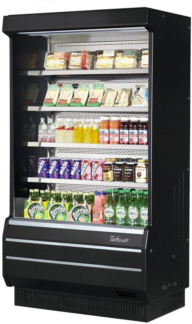 Perfect for high-traffic areas and front-of-store placement, the Turbo Air 39.2" Full Height Open Merchandiser is a stylish and efficient solution to help boost your cold product sales.