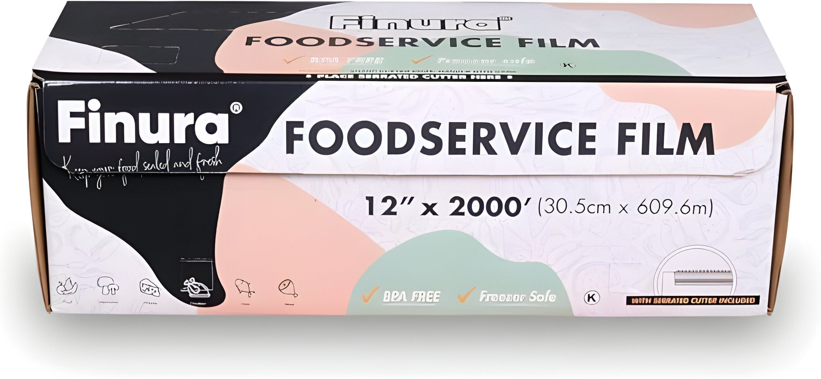 Introducing 12" x 2000ft Finura Food Service Film, a premium solution designed for the food service industry. This PVC film is tailored for commercial or home use, providing exceptional durability, ease of use, and eco-friendly characteristics. Finura Food Service Film is the go-to solution for those seeking a reliable, eco-friendly, and efficient way to handle, store, and transport food.