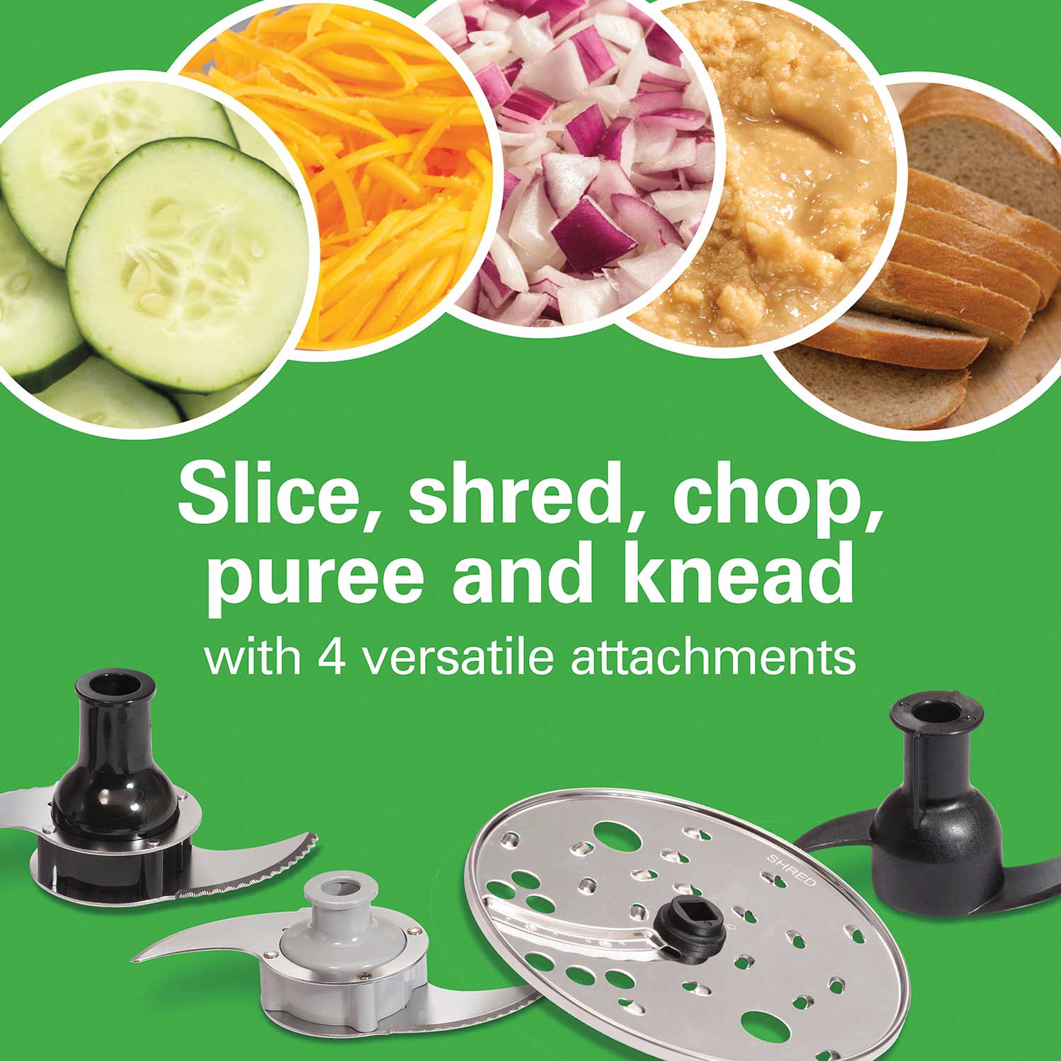 - Versatile Attachments: Comes with a reversible slicing/shredding disc, two stainless steel S-blades, and a dough blade for kneading.