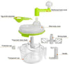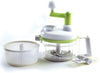 Not just a food processor! A kitchen necessity with no outlet required! Chops, dices, mixes, minces, beats, blends and whips, with no more than a few easy turns of the handle! Three sharp curved stainless steel blades cut easily through firm vegetables. Mince herbs in no time or whip up a batch of fresh salsa, dip, pesto, guacamole, hummus or baby food. Whisk attachment makes whipping cream and making meringues fast! Colander insert is perfect for a quick rinse and spin of fresh herbs, small salads and berries. Top opening allows you to add liquid ingredients while mixing and includes an egg separator. Takes up very little counter space and disassembles for easy clean up. Non-skid base allows for secure spinning and prevents slipping.