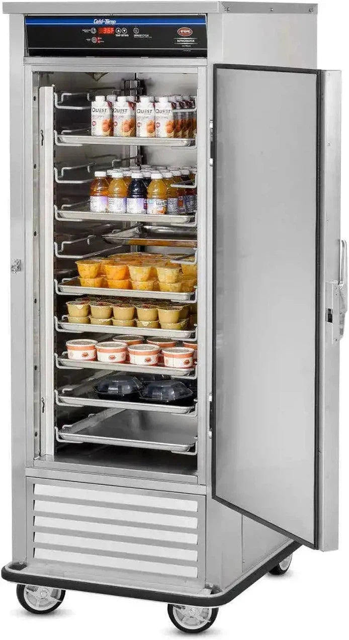 - Spacious Capacity: The FWE refrigerated cabinet can hold up to 10 standard 18" x 26" sheet pans, providing ample storage space for a variety of food products, from prepared dishes to fresh ingredients. This makes it perfect for commercial kitchens, catering services, and banquet halls that require high-capacity, mobile refrigeration for food preparation and storage.