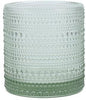 Inspired by the eclectic charm of flea market treasures from Paris, the Fortessa Jupiter 13.9 oz. Sage Triple Old-Fashioned Glass is a sophisticated and modern addition to your drinkware collection. With its sage glass design and varied beaded detailing, this glass exudes timeless elegance while adding a contemporary flair to any setting. Whether you're serving signature cocktails or classic beverages, the thick, sturdy base ensures durability for long-lasting use in upscale restaurants, bars, or cafes. This glass is also perfect for home entertaining, offering a versatile option that pairs beautifully with other pieces in the Jupiter collection (sold separately).