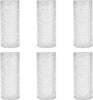 Bring timeless elegance and a pop of color to your table with the Fortessa Jupiter 10.8 oz. Clear Collins/Highball Glass. Featuring a stunning hobnail design inspired by Parisian flea market finds, this glass is adorned with delicate beaded detailing, adding sophistication to any setting. Perfect for serving mojitos, cocktails, water, juice, or any beverage, these versatile glasses are a must-have for cocktail enthusiasts and those looking to enhance their drinkware collection. Made from durable soda-lime-silica with magnesium oxide and alumina, this glassware offers beauty, functionality, and resilience. Its dishwasher-safe design makes it ideal for both everyday use and special occasions.