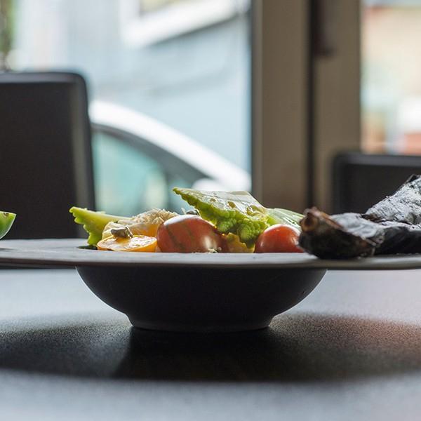 Boasting a wide rim, this Slayte wide-rim bowl, elegantly frames your food to enhance the presentation while also helping to minimize any spillage that may occur during service.