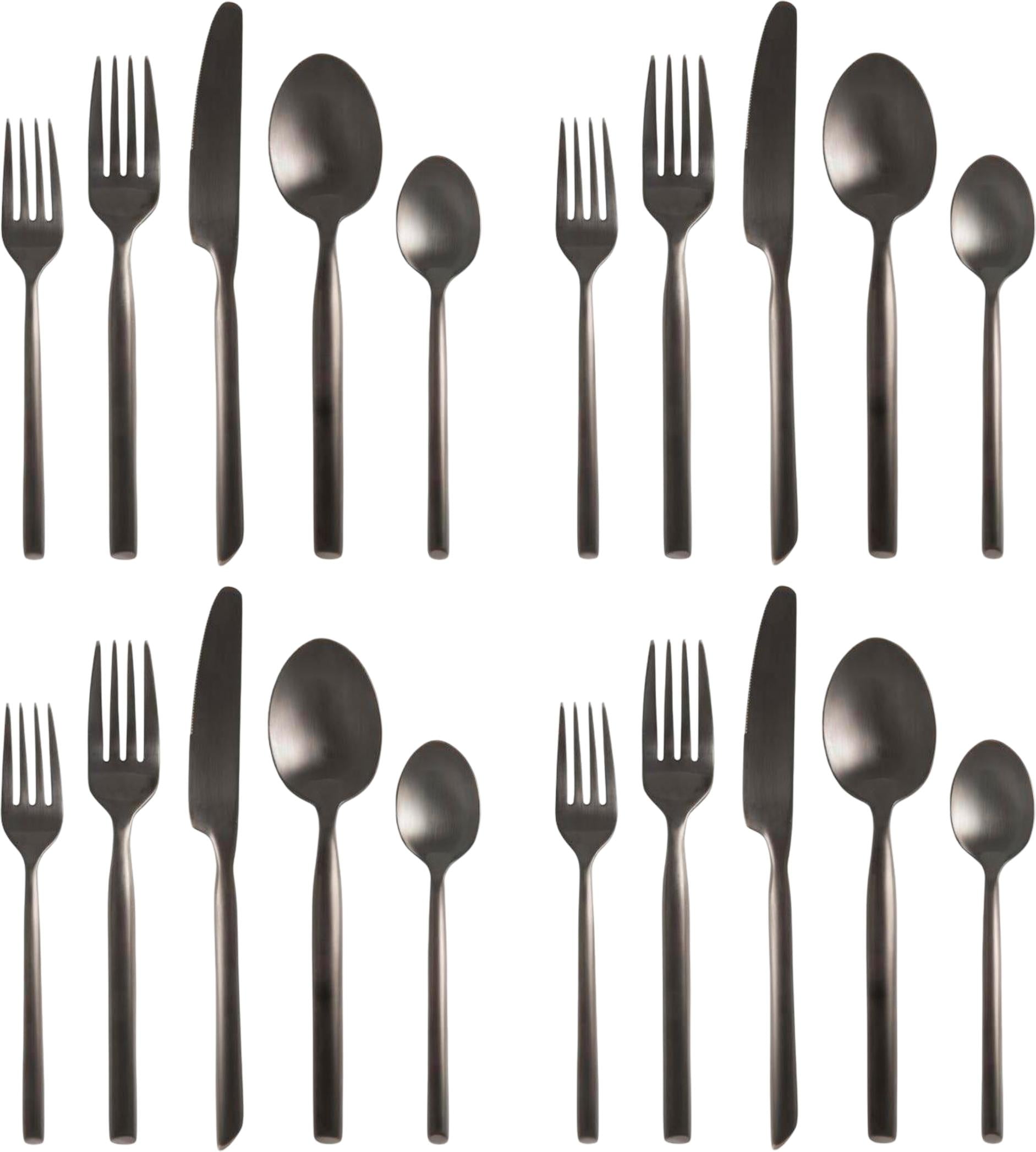 Fortessa - Capri 20 Pc Brushed Black Flatware Set - 20PPS-1646B-05