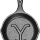 Meet American cookware born for adventure. This special edition Yellowstone mini skillet represents the best of American grit, told through stories and around the table. The collectible yet functional piece includes a raised Yellowstone Power Y design on the cooking surface, leaving an impression on baked breads and cookies. Put American cast iron to work in your home and keep authentically good food in the family.