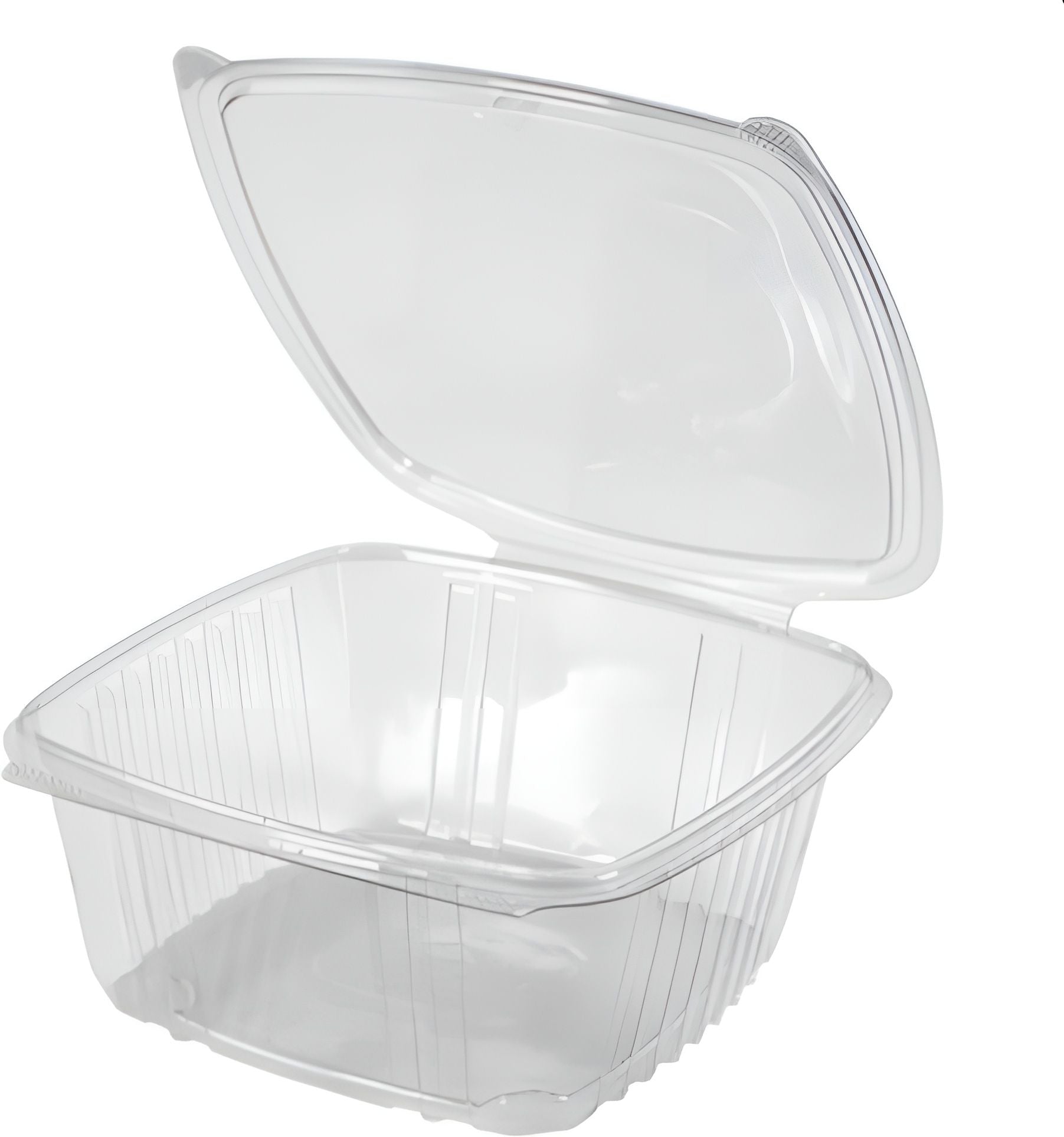 The Genpak Clear 64 oz Plastic Hinged Container in the size of 8" x 8.5" x 3.25" is a reliable and environmentally conscious choice for deli and food storage needs. The Genpak Clear 64 oz Plastic Hinged Container is a versatile and eco-friendly solution for your deli and food storage requirements. With its dimensions of 8" x 8.5" x 3.25", this container is designed to hold 64 ounces of food contents, making it ideal for larger food portions or family-sized items.Made with APET (amorphous polyethylene terephthalate) material, this container ensures clarity and durability, allowing customers to easily see the contents inside. The clear color enhances the presentation of your deli items, creating an appealing display for your customers. This container is made with 30% post-consumer recycled content, demonstrating its commitment to sustainability and reducing environmental impact. By using recycled materials, it contributes to conserving natural resources and promoting a greener planet for future generations.
