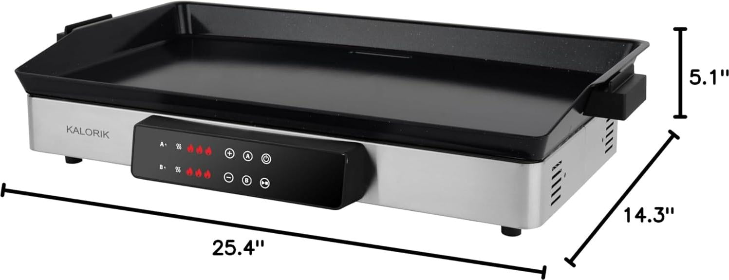 The Kalorik MAXX® 2-in-1 Electric Griddle & Double Cooktop is a versatile countertop appliance that combines the functionality of a double-burner stovetop with a teppanyaki-style griddle. Designed for both indoor and outdoor use, it's ideal for home kitchens, patios, RVs, or cabins .