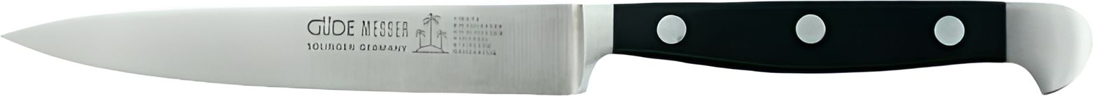 The Gude Utility Knife from the Alpha series is versatile due to its knife shape and the blade length of 6.5 inch and should not be missing as a typical all-round knife in any kitchen.