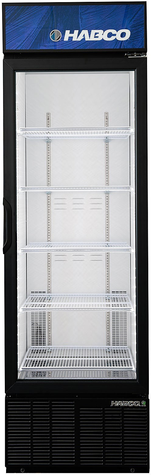 The Habco 23.9" Single Door Merchandiser Refrigerator is designed for businesses requiring optimal product visibility and cooling. With its self-contained Cassette® forced-air refrigeration system utilizing R290 hydrocarbon Natural Refrigerant, maintenance is made easy with its front-removable bottom-mounted Cassette® refrigeration. This model maintains temperatures between 34°F to 39°F (1°C - 4°C) and prioritizes directed airflow for optimum cooling and energy efficiency. The Finless, Free&Clear™ Condenser Coil reduces energy consumption and prevents clogging, while the automatic stainless steel condensate control system ensures efficient operation. With quality, self-lubricating, and sealed motors, this refrigerator provides reliable and quiet refrigeration.