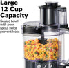 • 12 Cup Sealed Bowl with Pour Spout: Features a sealed bowl to prevent leaks when processing liquids such as soups, sauces, and dressings. The pour spout facilitates mess-free pouring.