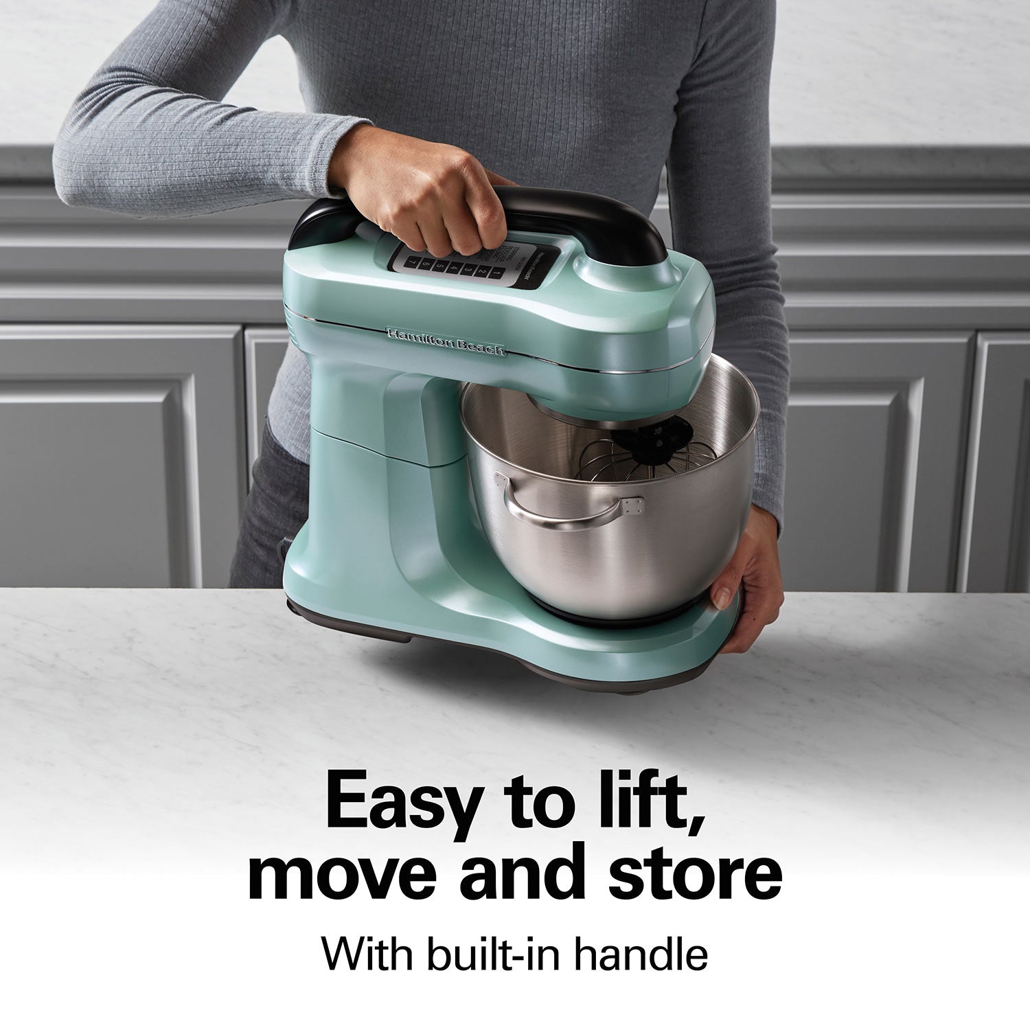 • Handle makes it easier to move and store the mixer