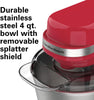 - Durable stainless steel 4 qt. bowl with removable splatter shield