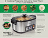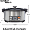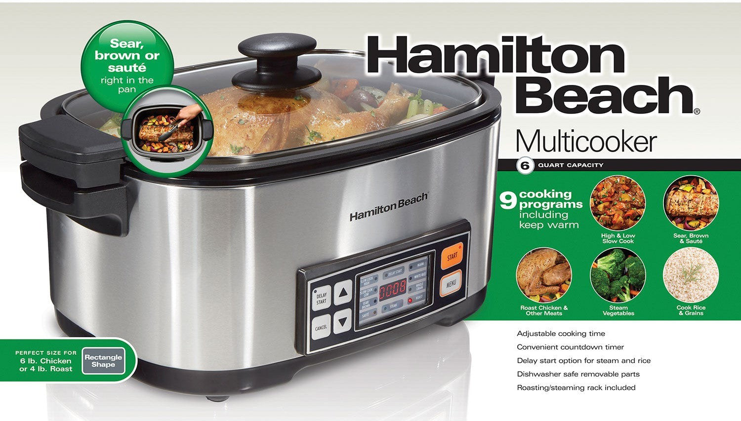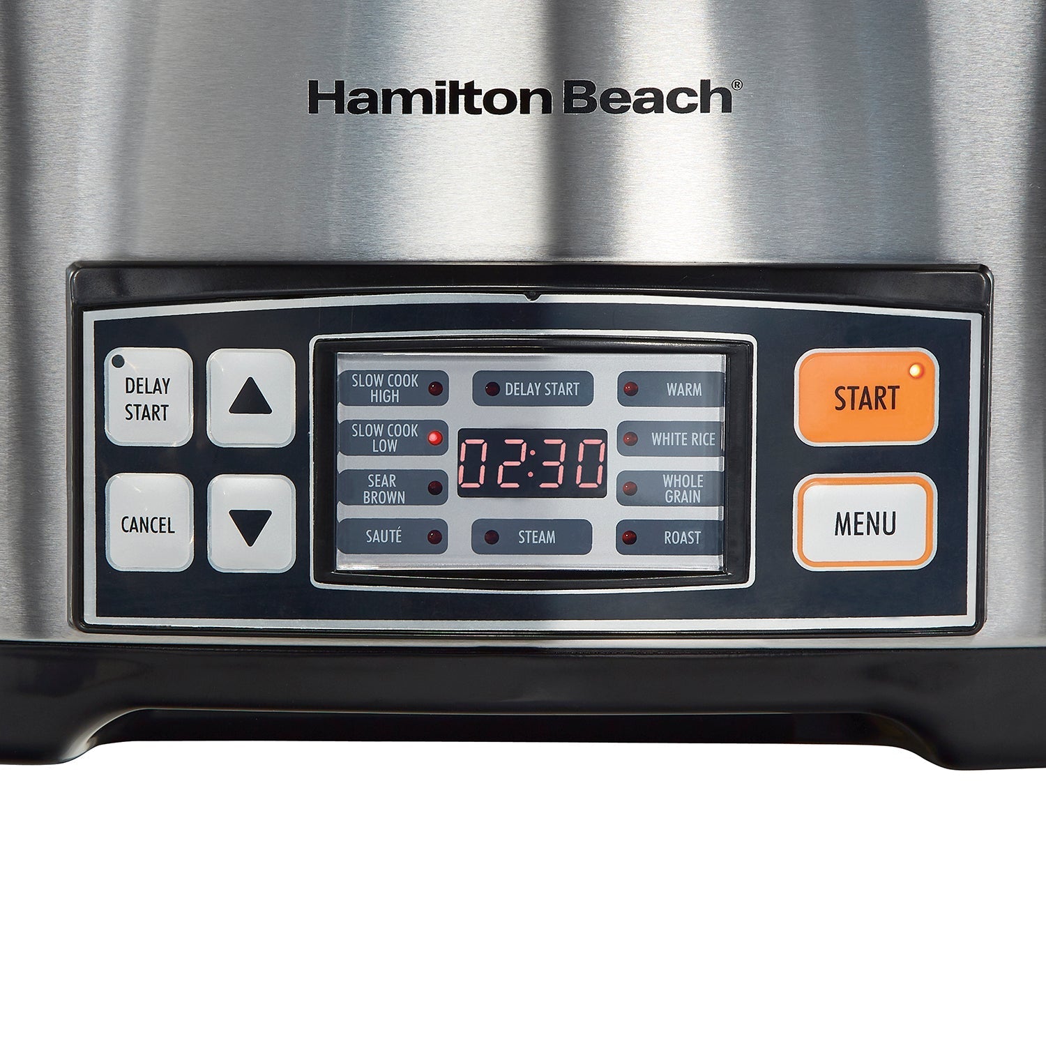 The Hamilton Beach 6 Quart 9-in-1 Multi-Cooker/Rice Cooker offers unparalleled cooking flexibility and convenience, making it a versatile addition to any kitchen. With its 6 quart capacity, this appliance is large enough to prepare meals for the whole family. It functions as a slow cooker, roaster, rice cooker, food steamer, and more, combining multiple kitchen appliances into one compact unit. With 14 cooking functions including slow cook (low & high settings), roast, rice and grains, steam, and sear/brown & sauté, this multi-cooker ensures you can prepare a wide variety of dishes with ease. Whether you're slow cooking a hearty stew, roasting a chicken, steaming vegetables, or sautéing ingredients before slow cooking, the Hamilton Beach multi-cooker handles it all.