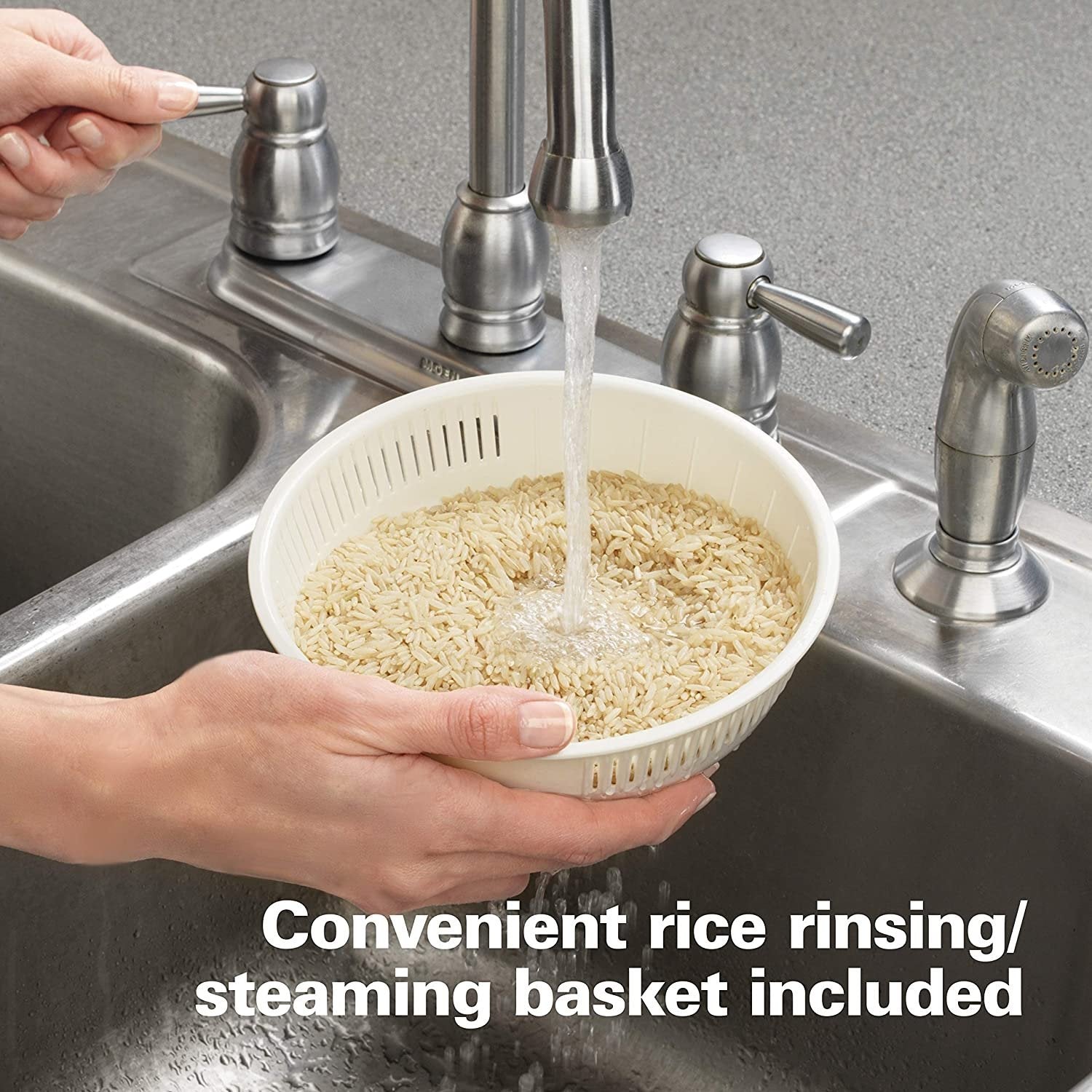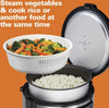 - Includes rice rinsing steam basket and paddle