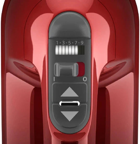 The KitchenAid 9-Speed Hand Mixer in Candy Apple Red is the perfect blend of style, power, and versatility. Its range of speed settings, comfortable design, and powerful motor make it an essential kitchen tool for all your mixing needs. With the added benefits of easy-to-clean attachments and a stunning design, this hand mixer will not only make your cooking and baking easier but also enhance the overall aesthetic of your kitchen. Bring home the KitchenAid 9-Speed Hand Mixer today and elevate your culinary creations to new heights!