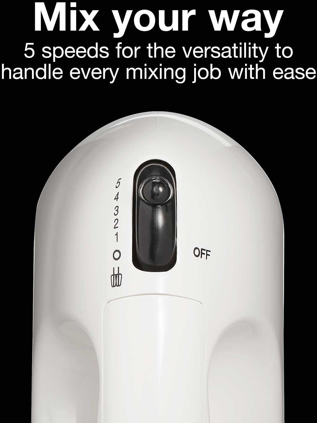 - Five Speed Settings: Easily adjust the mixing speed to suit your recipe needs, from gentle stirring to vigorous whipping.