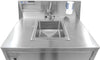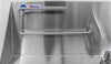 Crafted with a 16-gauge 304 stainless steel fabricated bowl, top, and backsplash, and an 18-gauge 430 stainless steel cabinet body, this hand sink is built to withstand heavy use while maintaining its sleek appearance. The unit is equipped with a deck-mounted 4" center faucet and a 4" gooseneck spout, providing convenient water access. It features two removable cold water tanks (19 liters each) and two removable wastewater tanks (28 liters each) with 37" hoses, allowing for easy maintenance and continuous operation.