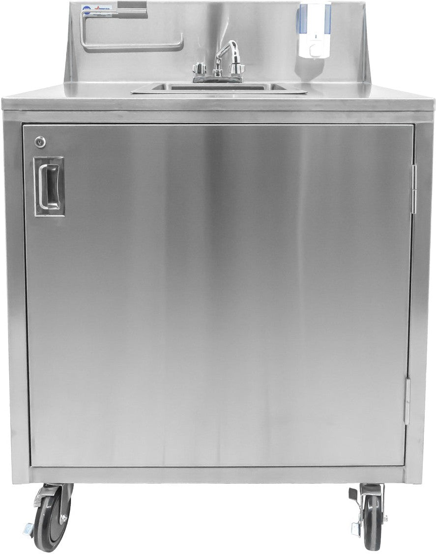 Omcan - 25.2 x 34.3 x 38.2" Portable Hand Sink with Backsplash and Water Heater Tank and Pump - 46788