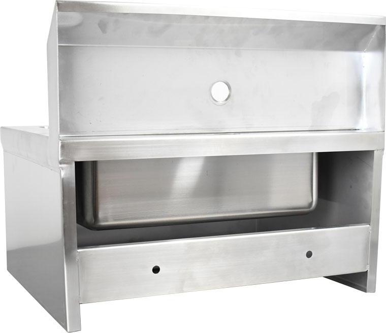 This hand sink with knee valve assembly and faucet has a bowl dimension of 14” x 10” x 5” and is made of high quality 18 gauge 304 stainless steel. The knee valve faucet offers a convenient way for employees to quickly wash their hands and continue assisting customers.