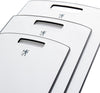 Set features cutting boards in 3 handy sizes: small (8.5 x 12.2-inches), medium (10.25 x 15-inches), and large (11.5 x 16.5-inches).